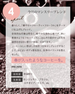 4月の「MONTH」は「春が入ったようなコーヒーを。」